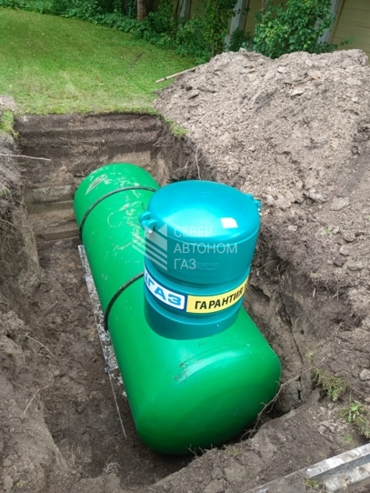 Этот монтаж все же состоялся, но в ходе работ нам пришлось пересмотреть нюансы размещения ёмкости и прокладки подземного газопровода. Газгольдер и плиту пришлось опускать над ограждением участка, траншею кое-где откапывали вручную, без применения техники. Это немного притормаживало работы по монтажу, но в итоге оборудование было установлено и подключено за один день.